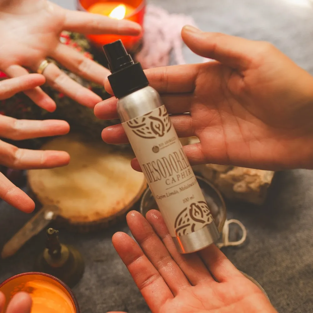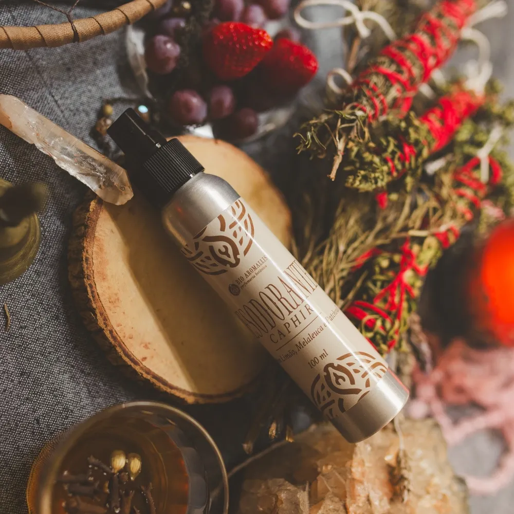 Com uma formulação natural e vegana, o desodorante caphir reune praticidade, refrescância e eficiência. Seu ativo desodorante principal é o que chamamos de Cristal Líquido, é a versão solubilizada das barra de Pedra Hume, que possuem notável ação antibacteriana. Nesta composição adicionamos insumos com propriedades emolientes e solubilizantes, além dos óleos essenciais que compõem a linha Caphir. Possui válvula spray para melhor dispersão do produto, que deve ser feita diretamente sobre as axilas limpas e secas.