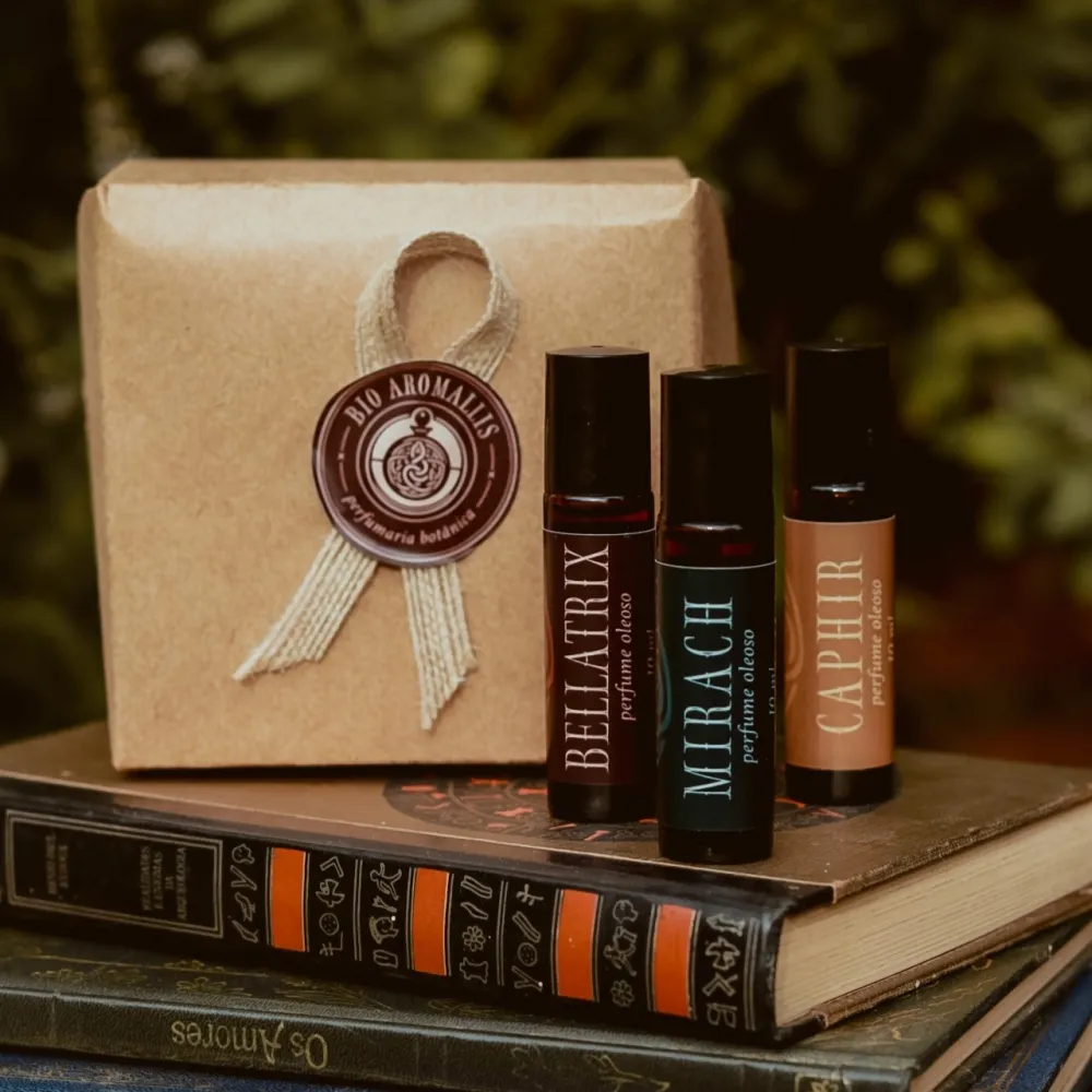 O kit de 3 Perfumes em óleo contempla um de cada aroma desenvolvido exclusivamente pela BioAromallis.